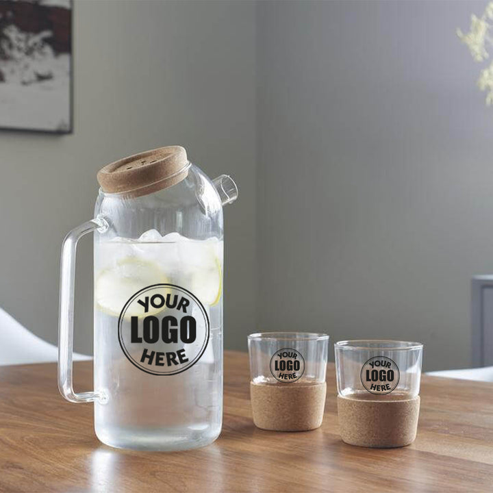This sophisticated glass jar set includes a 1.8L borosilicate carafe with a cork lid and two 240ml matching tumblers featuring cork bases for stability. The carafe’s integrated spout infuser lets you easily enhance your water with fruits or herbal teas, offering a convenient and elegant way to stay refreshed. Crafted from durable borosilicate glass, this set is perfect for both home and office dining tables, combining functionality with refined design.