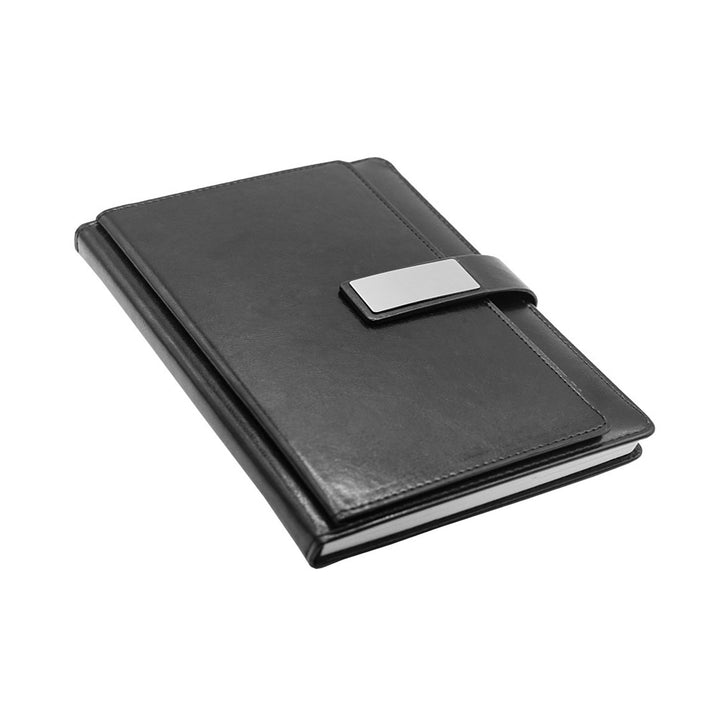 Discover refined elegance with the Eternity Premium Quality Soft Thermal PU Leather Notebook—where polished design meets everyday utility. Constructed from supple, thermal PU leather, this notebook combines a tactile luxury experience with exceptional resilience, making it equally suited for boardroom presentations or personal journaling. Integrated card slots keep your business and personal cards within immediate reach, while a dedicated document compartment prevents important papers from getting lost. The sophisticated metal engraving plate adorning the front cover elevates its executive aesthetic. Fully customizable with your logo, initials, or brand identity, this notebook stands as an ideal corporate investment or premium gift for discerning professionals.