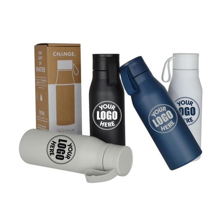 This vacuum insulated water bottle combines functionality with sustainability, crafted from recycled stainless steel. Designed with double walls, it keeps drinks hot for up to 8 hours and cold for up to 24 hours, using premium grade stainless steel that resists corrosion. Featuring a leak-proof design and an integrated carry loop, it offers convenience and style inspired by Scandinavian design. With a 600ml capacity, it supports your hydration needs while reducing single-use waste. Packaged in an eco-friendly recycled box, this bottle is part of the CHANGE Collection that supports Water.org, helping provide access to safe water worldwide.