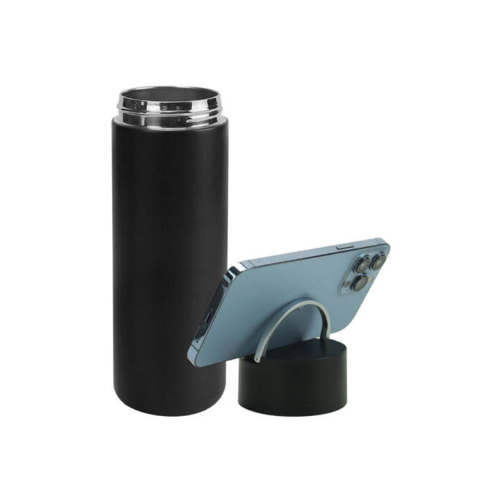 This 600 ml double wall stainless steel bottle combines temperature retention with innovative design, featuring a twist-off lid that integrates a secure phone holder. It ensures your beverages stay fresh while allowing convenient, hands-free access to your mobile device—perfect for professionals seeking efficient hydration and connectivity on the move.
