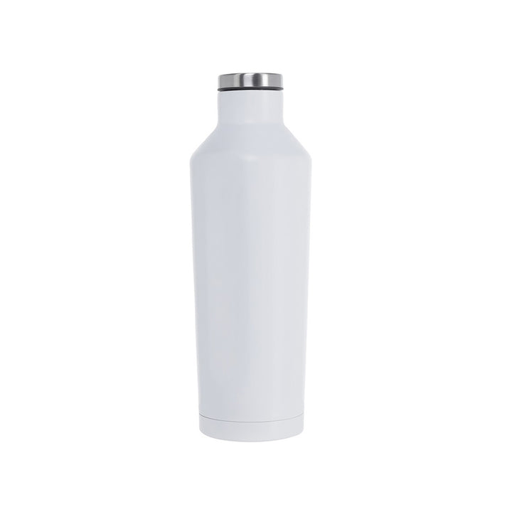 This stainless steel water bottle features double-wall vacuum insulation to keep beverages cold for up to 12 hours or hot for up to 8 hours without condensation on the exterior. Its wide-mouth design accommodates ice cubes easily, while the flat sides ensure a secure grip, combining durability and practicality for everyday hydration needs.