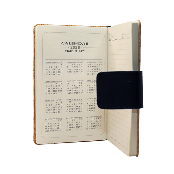 Elevate your professional practice with the A5 Eco-friendly Cork Notebook with Calendar, a testament to sustainable luxury and purposeful design. Constructed from 100% renewable cork—harvested responsibly without compromising forest ecosystems—this notebook delivers a naturally refined aesthetic that communicates environmental stewardship. The lightweight yet durable cork exterior provides exceptional durability while maintaining an understated elegance suitable for any professional context. The A5 format (14.8 cm x 21 cm) offers generous writing space across 80 premium lined sheets in cream or recycled paper, engineered for optimal writing comfort and ink performance. An integrated calendar extending through 2026 facilitates strategic planning and long-term organization, while a dedicated information page accommodates essential personal or business details. The secure magnetic grey closure safeguards your confidential notes, and the integrated pen loop ensures your writing instrument remains accessible. Ideal for executives, academics, and creative professionals, this notebook transcends conventional stationery as a corporate gift or promotional vehicle. Customization options—including embossing, UV printing, and screen printing—enable sophisticated brand integration that reinforces your organization's commitment to quality and environmental responsibility.